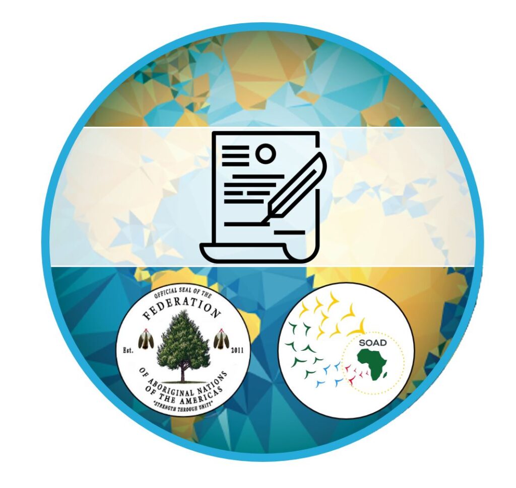 The State of the African Diaspora (SOAD) has formally signed the Kinakwii Peace Treaty, joining the Kinakwii Nation and the Federation of Aboriginal Nations of the Americas (FANA) in a landmark commitment to friendship, unity, respect, and cooperation.